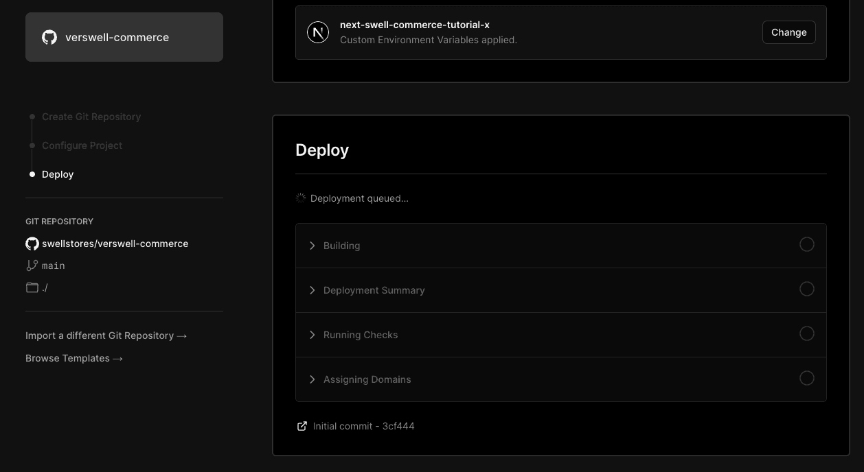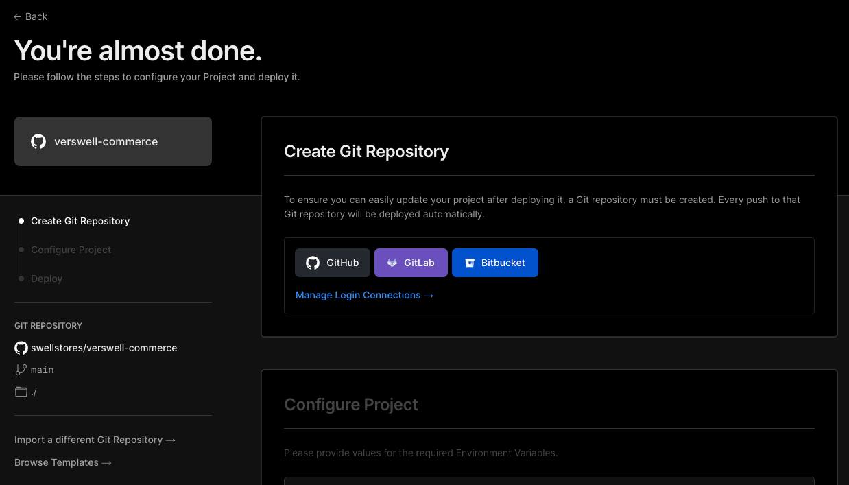 Once you’ve created an account, you’ll need to deploy Next-Commerce directly from Vercel.