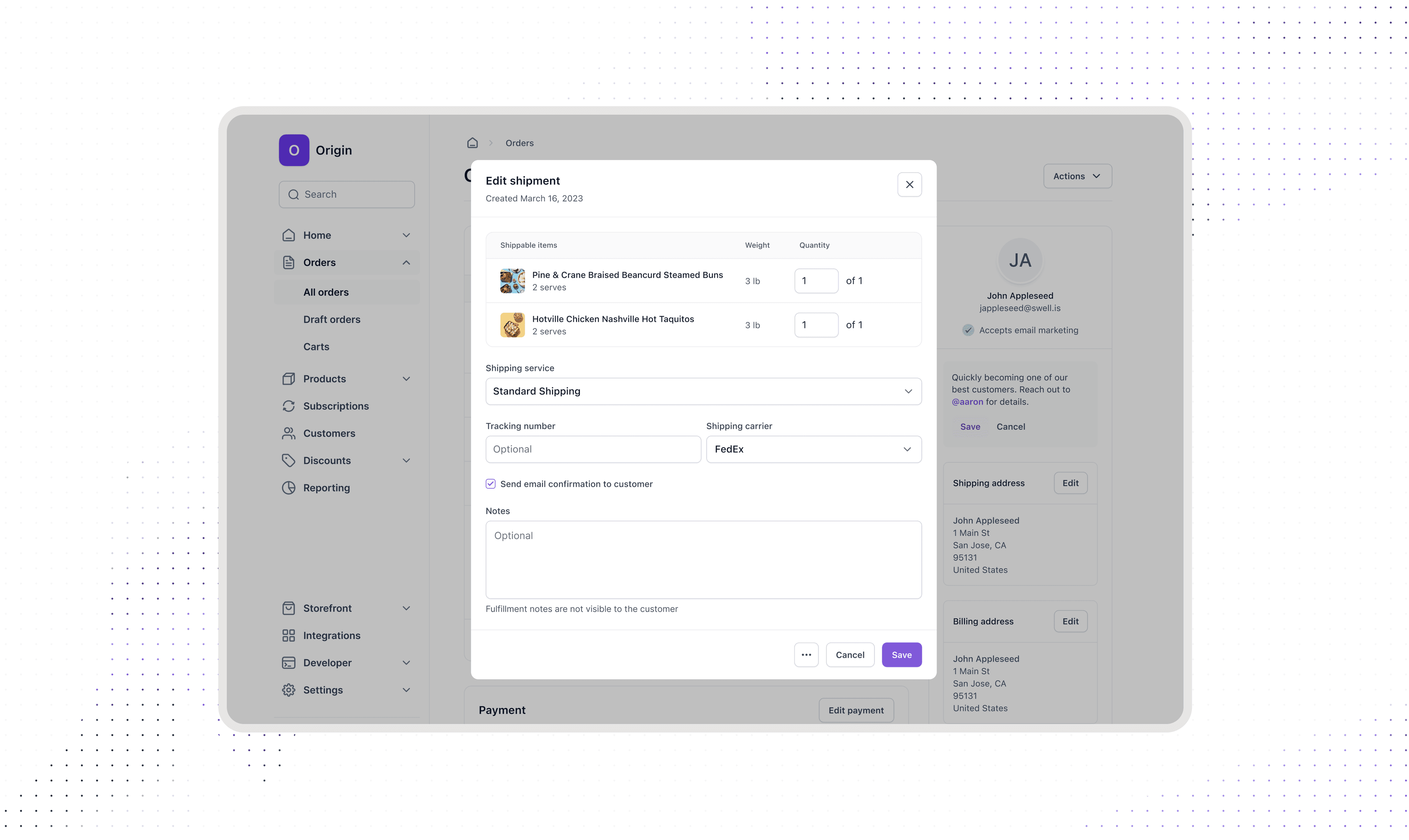 Swell’s built-in subscription functionality allows for separate billing and fulfillment schedules, which allows IGC to charge customers before ordering ingredients, then fulfilling orders and sending out delivery notifications when they’re prepped and ready to be loaded into a van.